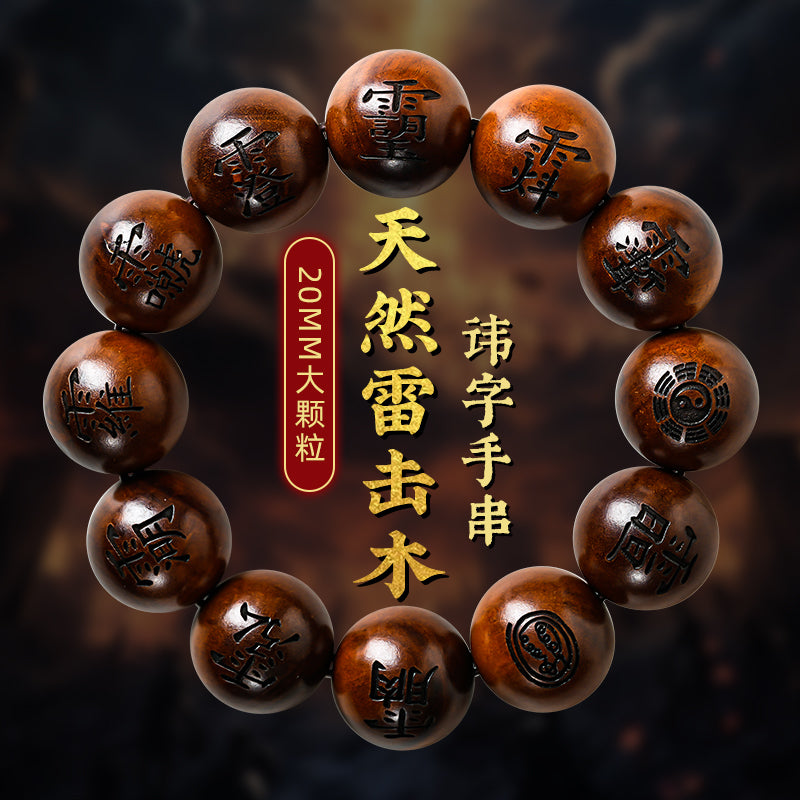 雷击木手串真品枣木讳字手链木雕盘玩手把件