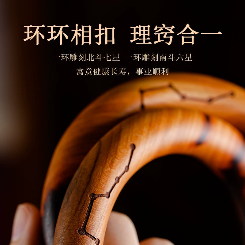 雷击桃木乾坤圈雕刻南斗六星与北斗七星